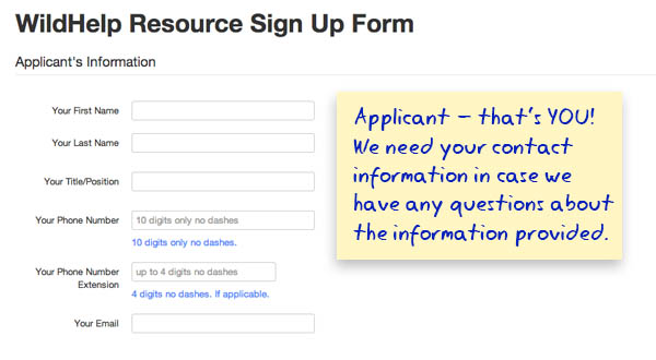 Please read these instructions before filling out the WildHelp Resource Sign Up Form.
